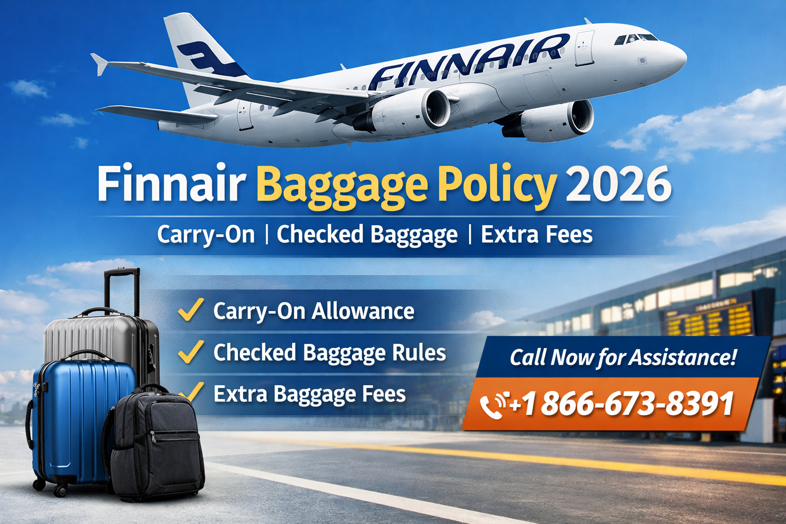 In this detailed guide, we explain the Finnair baggage policy 2026, including carry-on baggage, checked baggage rules, and extra baggage fees. If you need help with bookings or baggage questions, travel experts at Flight Aura are available to guide you. For expert travel assistance, you can reach Flight Aura — Call us now at +1 866-673-8391.