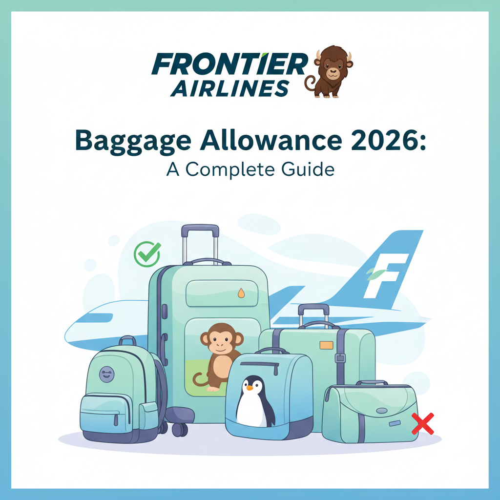 Frontier Airlines Baggage Allowance 2026 follows a strict baggage policy, allowing one free personal Item and charging a fee for carry-on and checked baggage. All baggage is strictly limited to the airline's baggage limit, and the airline applies heavy fees for overweight or oversize bags. Read the blog below to learn about the Frontier Airlines Baggage allowances 2026 for different baggages: